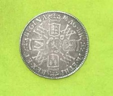 The 1691 Half Crown - William and MaryThe Reverse is the second reverse showing a crowned cruciform shields design with the monogrammed initials of WM in the angles.